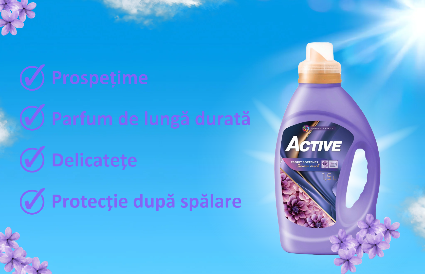 O caracteristica remarcabila a balsamului Active Summer Touch este capacitatea sa de a conferi hainelor tale o moalete extraordinara si un aspect placut la atingere. Formula sa avansata contribuie la reducerea electricitatii statice si la prevenirea incarcarii hainelor in timpul procesului de spalare. Astfel, hainele devin mai usor de intins si de aranjat, iar procesul de calcare este simplificat semnificativ. Indiferent daca sunt hainele tale preferate sau cele ale intregii familii, acest balsam de rufe este alegerea ideala pentru a le mentine moi si placute la atingere.