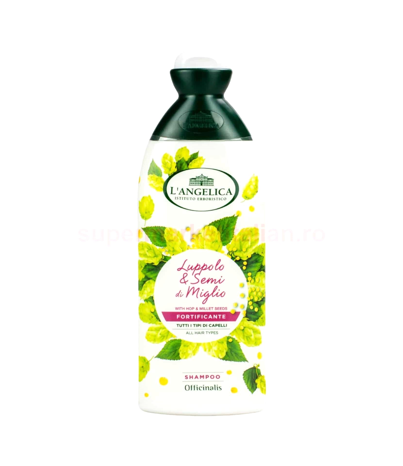 Institutul Erboristico L’Angelica a creat pentru tine noua linie Officinalis: o gama de produse studiate pentru a avea grija de par in mod natural. Samponul Officinalis fortifiant pentru uz frecvent este adaptat pentru toate tipurile de par. Hameiul si semintele de mei, multumita proprietatilor lor nutriente favorizand mentinerea parului puternic, vitalizat si stralucitor.