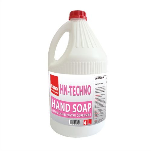 Sapunul lichid Sano HN Techno este varianta profesionala de sapun lichid pentru intretinera mainilor. Acesta are culoare roz si capacitate de 4 litri. Are un parfum placut si inviorator. Indeparteaza orice urma de impuritati, lasand piela curata si catifelata. Colectia HN Techno Soap este potrivita oricarui tip de dispenser pentru spatiile publice, private sau casnice.