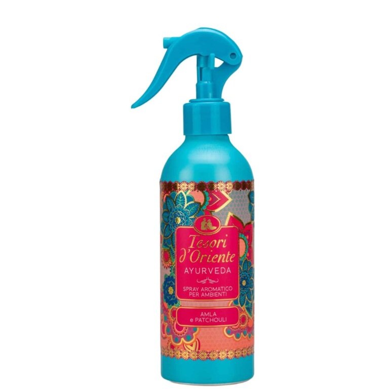 Spray aromatic Tesori d’Oriente Ayurveda 250 ml pentru casă, eliberează instantaneu notele intense și învăluitoare ale parfumului în mediu.