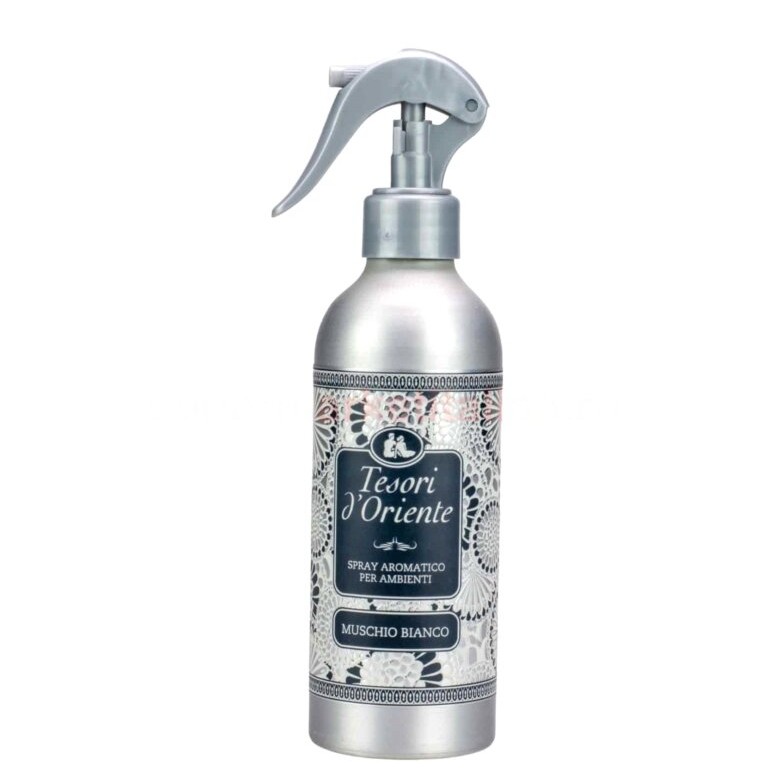 Spray aromatic Tesori d’Oriente Mosc alb 250 ml pentru casă, eliberează instantaneu notele intense și învăluitoare ale parfumului în mediu.